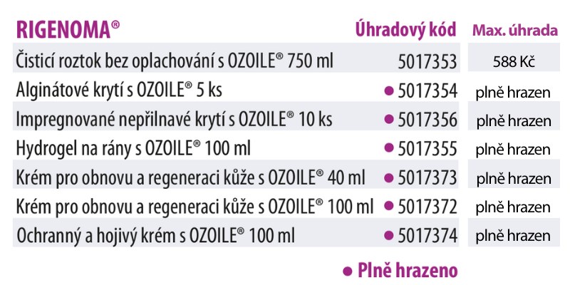 Barevně označené přípravky jsou plně hrazeny pojišťovnou (bez doplatku). Neoznačené přípravky jsou hrazeny částečně (s doplatkem, jehož výše se může měnit podle ceny, kterou určuje lékárna).